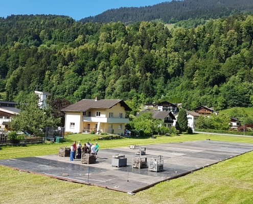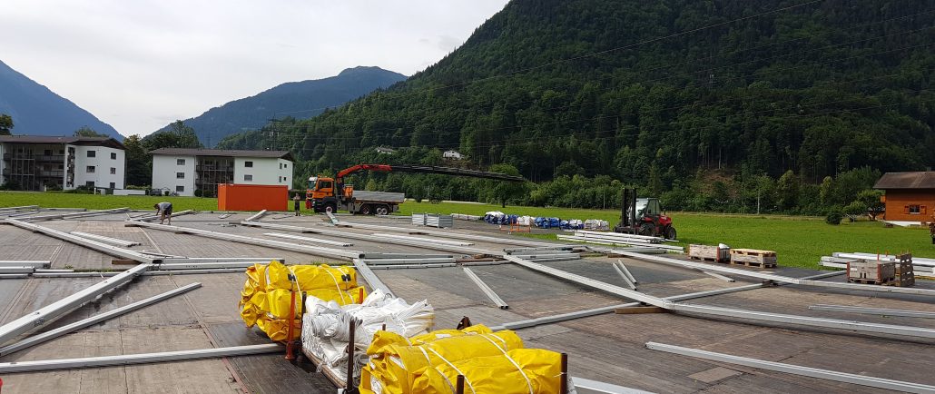 Bereits heute Nachmittag konnten wir das hervorragende Wetter nutzen um mit den Aufbauarbeiten für den Zeltboden zu beginnen.